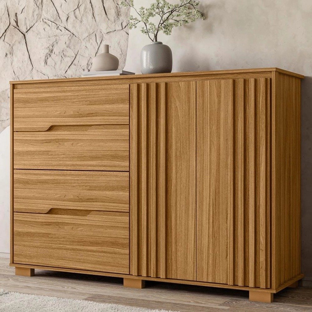 Em até 1x de R$ 430,10  sem juros À vistaR$ 365,59no Pix		Cômoda 4 Gavetas 2 Portas Ripado Texas Moval