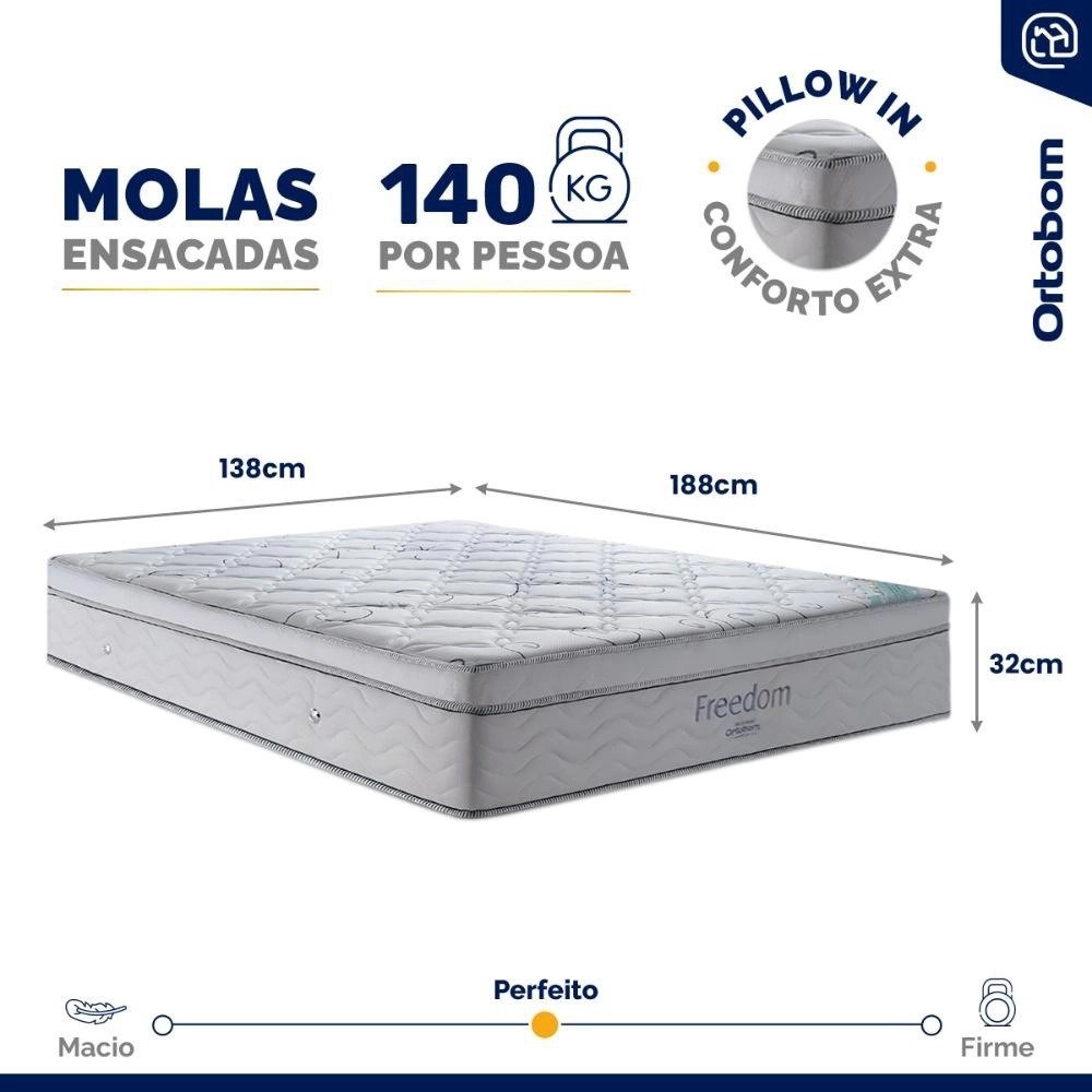– Tipo: Molas Ensacadas e Espuma D33 (Mais resistente);
