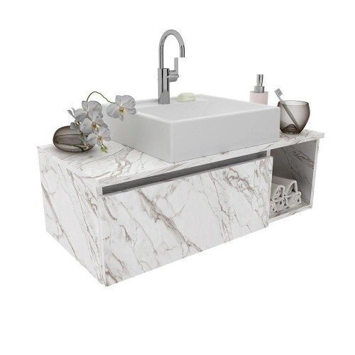 Em até 1x de R$ 419,99 sem juros À vistaR$ 356,99no Pix Gabinete PPia De Banheiro 1 Porta E 1 Nicho Mármore Branco