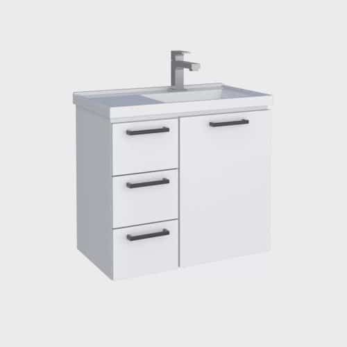 Gabinete de Banheiro Suspenso 80cm Helena com 02 Gavetas MelArenas e cuba Branca