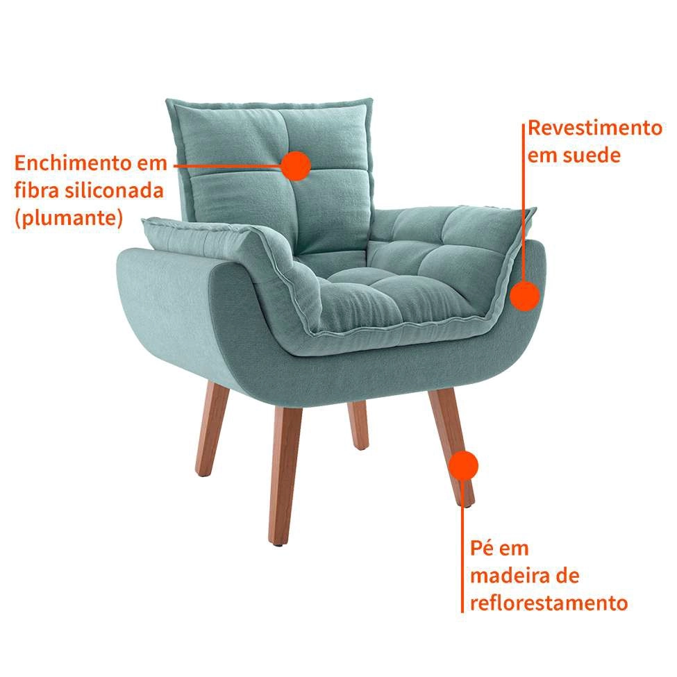 | Material6221 | A Poltrona Lidi possui estrutura em madeira eucalipto 25mm e mdf 15mm, encosto e assento em espuma D26 com plumante 100% siliconado, aplicação de percinta elástica e revestimento em suede com acabamento em capitonê |