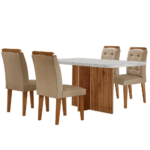 Com espaco ideal para dispor as melhores receitas e recepcionar a sua familia, a sala de jantar Olimpia com cadeiras Carol e um movel completo em todos os sentidos. O conjunto e compacto, possui sua estrutura em mdf e acabamento em pintura uv, que proporcionam melhor durabilidade ao produto. As cadeiras tem um designer sofisticado, misturando o moderno e o classico com seu encosto em detalhes de botoes, trazendo conforto e elegancia para seu lar. Possui puxador na parte superior do encosto para facilitar a movimentacao e evitar o toque ao tecido. Caracteristicas: Contem vidro Tampo canto curvo Estrutura em mdf Acabamento em Pintura uv Dimensoes Mesa: Altura: 80 cm Largura: 120 cm Profundidade: 80 cm Dimensoes Cadeira: Altura: 102,5 cm Largura: 42 cm Profundidade: 56 cm Garantia do Fornecedor 3 meses Informacoes importantes: As tonalidades das cores podem sofrer alteracao de acordo com a configuracao de cada monitor. Os objetos que ambientam as fotos nao acompanham o produto. Nao disponibilizamos a montagem do produto. O produto acompanha manual de montagem. Nao nos responsabilizamos por danos no produto causados por montagem de qualquer outra forma que nao seja a descrita no manual. Verifique as dimensoes do produto e certifique-se que o percurso que ele fara ate o local de uso permite sua passagem. Moderna Mobilia reserva o direito de alterar as especificacoes tecnicas sem previo aviso. As medidas contidas no site podem sofrer variacoes de acordo com a montagem, tipo de costura etc.